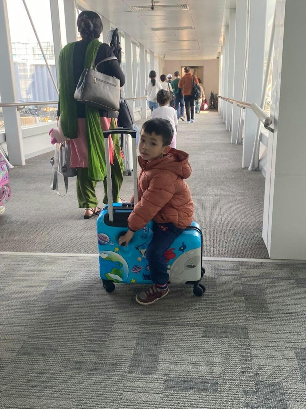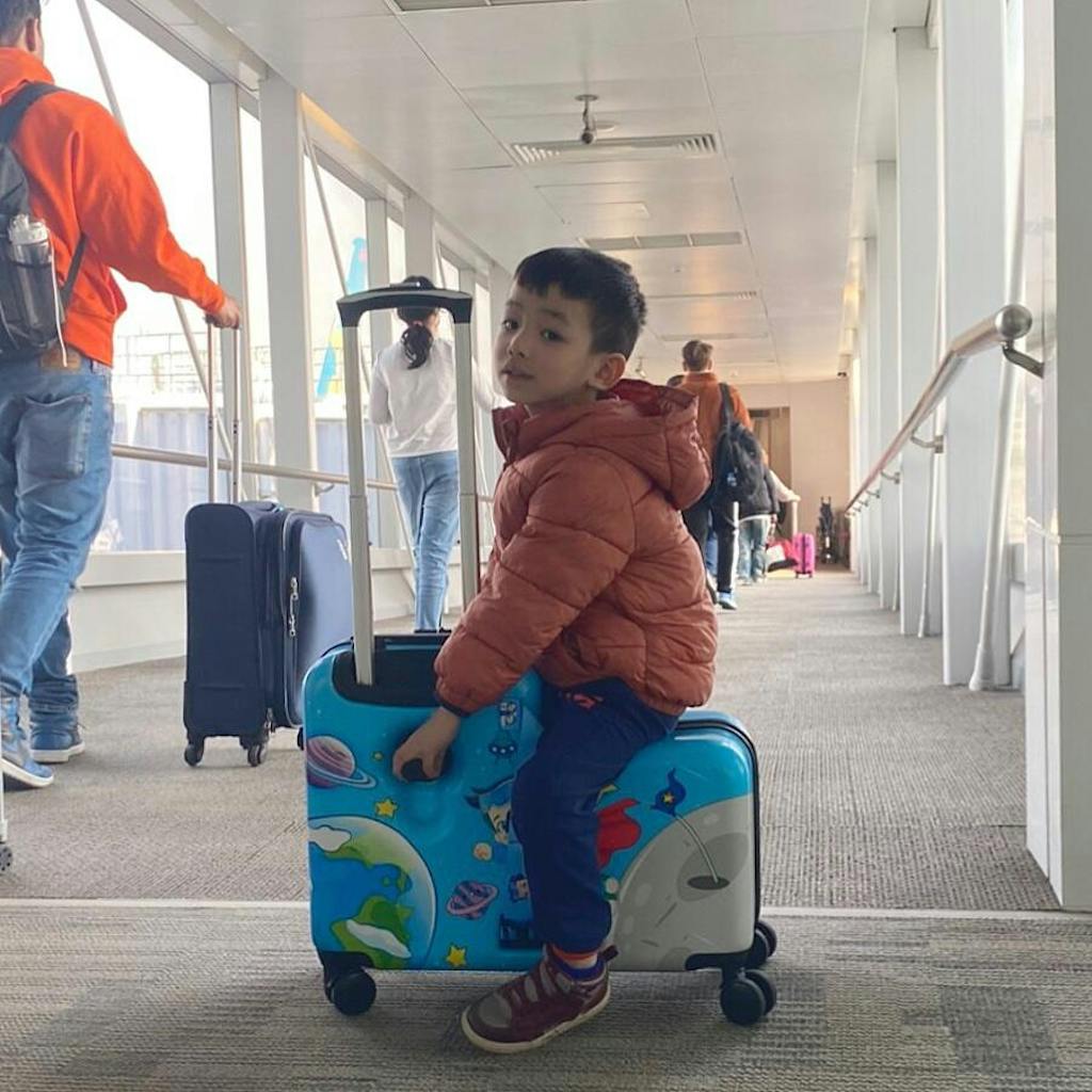 Galaxy Boy Sit - On Luggage/Blue ➕FREE Travel Tote Bag
